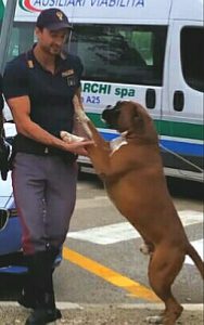 “Ringrazio i poliziotti che hanno soccorso e messo in sicurezza il cane con professionalità e sincero affetto”, continua Piera Rosati, “e che hanno immediatamente accertato le responsabilità di chi si è macchiato di una tale bassezza nei confronti di un animale che si è ritrovato solo e disperato sulla corsia di un’autostrada dopo essere stato abbandonato dalla persona che riconosceva come il suo proprietario. Stupisce il fatto che anche chi era in sua compagna, una donna di 72 anni, nulla abbia fatto per impedire che venisse posto in essere il crimine. Ci siamo sincerati sulle condizioni del boxer, che i poliziotti hanno affidato alle cure del veterinario della Asl. Il cane sta bene, è educato e affettuoso ed è certo che non merita di tornare nel possesso del suo proprietario che non ha scuse per quello che ha fatto. Totalmente fuori luogo la sua dichiarazione alla polizia che non trova alcuna giustificazione: ‘il cane mi aveva morso poco prima’. È fuori ogni ragione e molto crudele”.