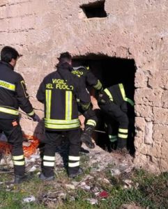 A fine gennaio, alcuni addetti ai lavori stradali hanno sentito dei lamenti provenire da un rudere vicino la strada. Si sono avvicinati e hanno visto che dentro quel casolare abbandonato c’era una voragine profonda circa 6 metri e sul fondo un cucciolo che guaiva disperato. Grazie all’intervento congiunto dei Vigili del Fuoco, data la precarietà della struttura, e dei volontari della Sezione LNDC locale, il piccolo è stato salvato e portato subito dal veterinario dato che presentava delle ferite al collo e alle orecchie.